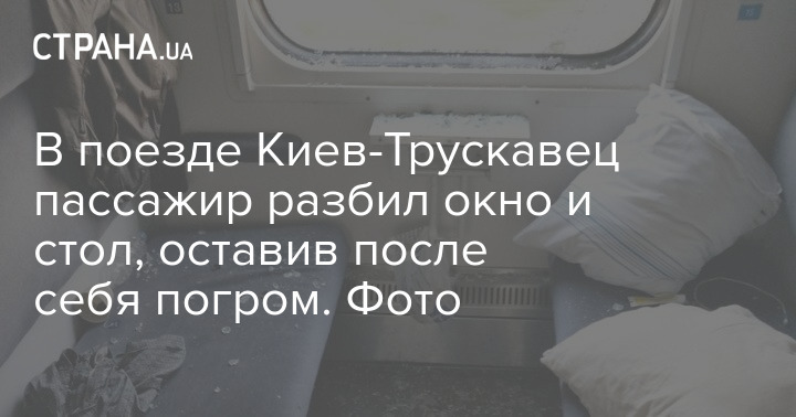 В поезде Киев-Трускавец пассажир разбил окно и стол, оставив после себя погром в купе. Фото