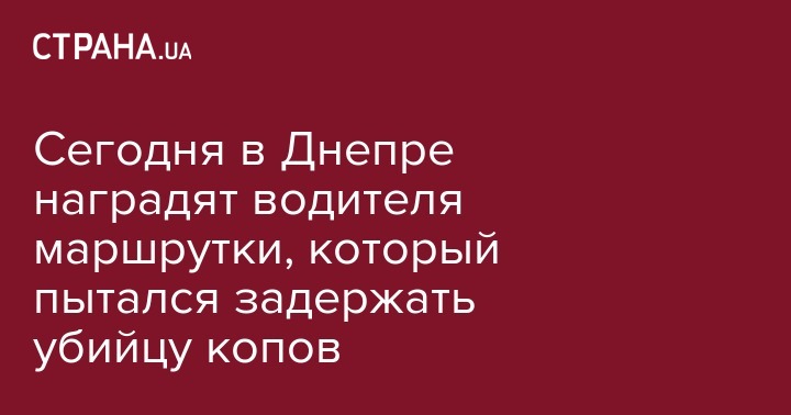 В понедельник, 26 сентября, в Днепре наградят водителя маршрутки, который попытался помешать скрыться с места убийства патрульных экс-торнадовцу Пугачеву. Об этом в Facebook сообщил мэр Днепра Борис Филатов.