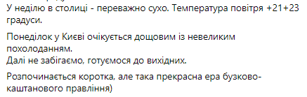О том, какой ждать погоды на выходных, рассказала синоптик Наталья Диденко в своем Фейсбуке.