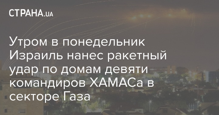 Пресс-служба Армии обороны Израиля (ЦАХАЛ) заявила о том, что ранним утром понедельника 17 мая, авиация нанесла ракетные удары по домам девяти командиров ХАМАС в секторе Газа.