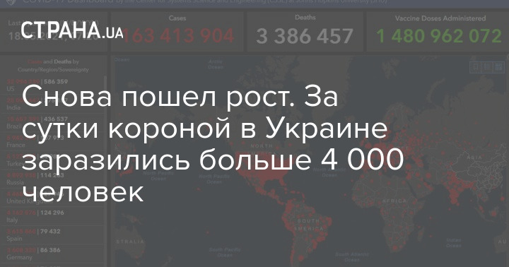 По состоянию на утро 18 мая, число зараженных на планете перевалило за 163 миллиона, фото: arcgis.com