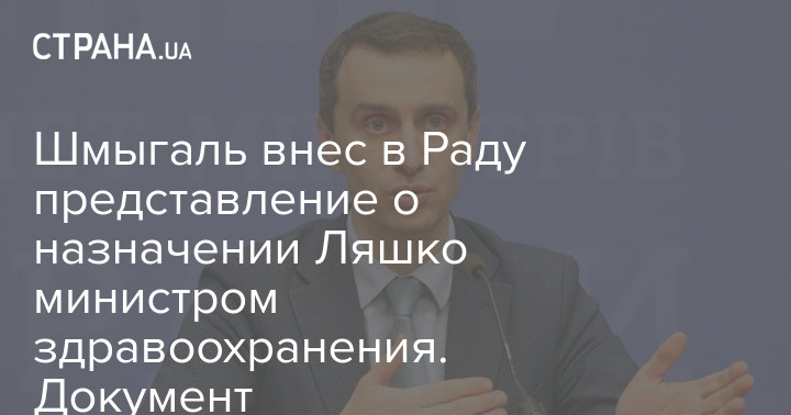 Шмыгаль внес в Раду представление о назначении Ляшко министром здравоохранения. Документ