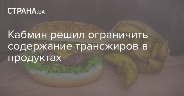 Кабинет министров Украины одобрил законопроект "О внесении изменений в некоторые законы Украины относительно ограничения содержания трансжирных кислот в пищевых продуктах".