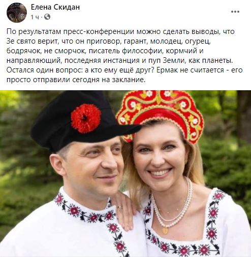 "По результатам пресс-конференции можно сделать выводы, что Зе свято верит, что он приговор, гарант, молодец, огурец, бодрячок, не сморчок, писатель философии, кормчий и направляющий, последняя инстанция и пуп Земли, как планеты.