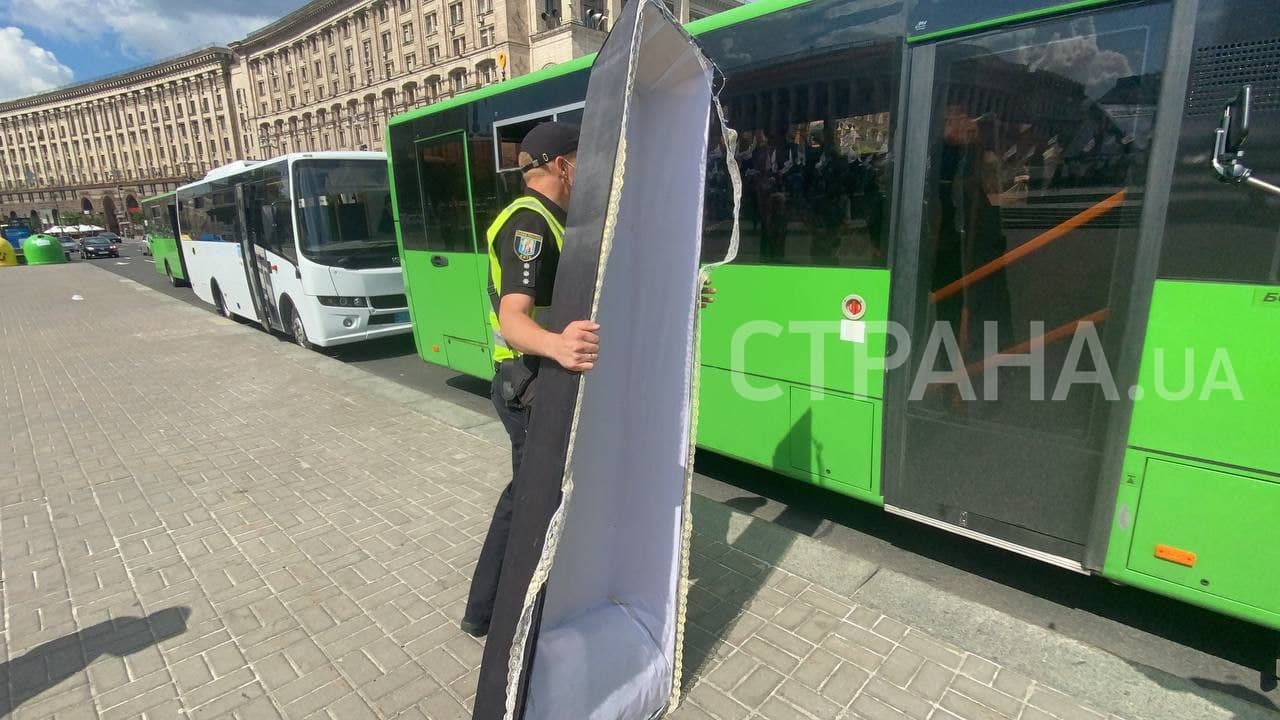 Далее колонна стала продвигаться по Крещатику. Движение автомобильного транспорта там было полностью парализовано.