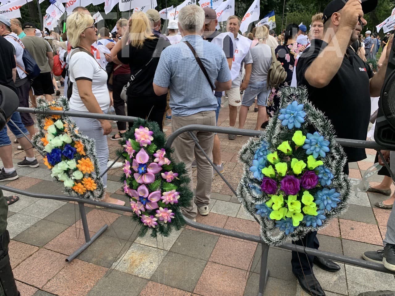У Верховной Рады они продолжили выкрикивать такие лозунги. Прикрепили траурные венки к металлической ограде возле парламента.