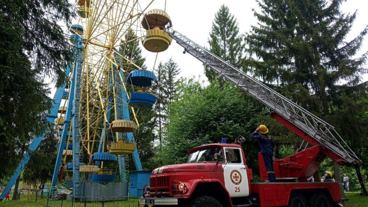 Сотрудники ГСЧС Украины организовали успешную эвакуацию людей, застрявших в кабинках остановившегося на ходу колеса обозрения. Среди оказавшихся в ловушке на неисправной карусели были и дети.