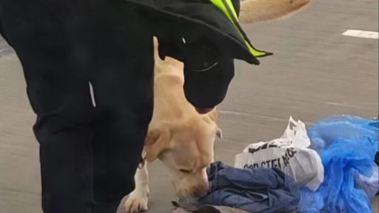 В частности, на одном из снимков показано, как предположительно служебная собака белорусских правоохранителей обнюхивает изъятые на досмотр сумки пассажиров.
