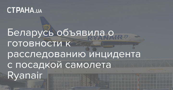 Беларусь заявила о готовности расследовать инцидент с экстренной посадкой в Минске самолета Ryanair сообщением Афины - Вильнюс и уведомила об этом Международную организацию гражданской авиации (ICAO) и Международную ассоциацию воздушного транспорта (IATA).