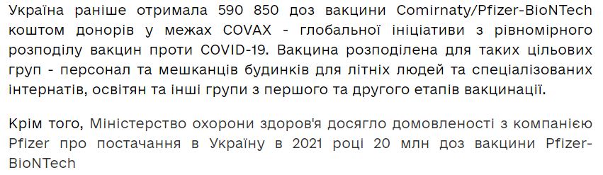 Скриншот из новости на сайте vaccination.covid19.gov.ua