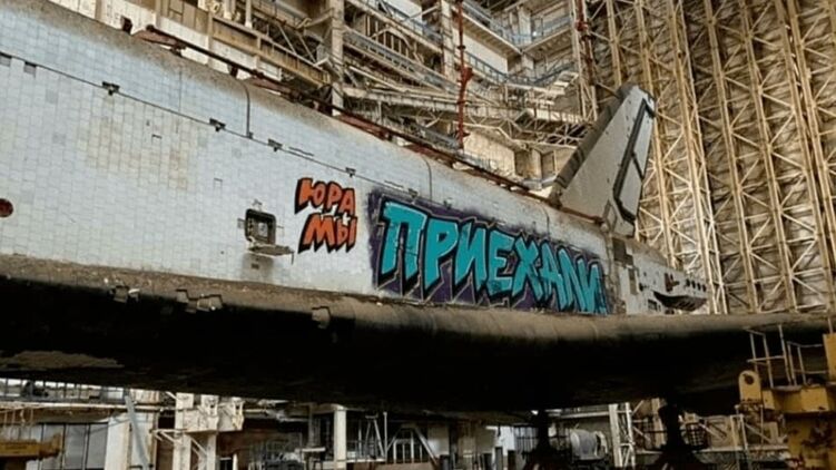 Граффити на недостроенном космическом корабле Буран. Скриншот из телеграм-канала РИА Новости