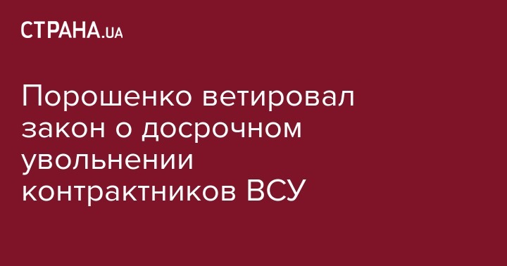 Порошенко ветировал закон о досрочном увольнении контрактников ВСУ