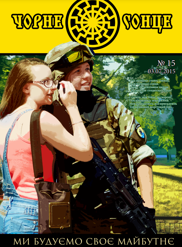 Обсуждения украинской биографии Романа началось с фотографии на обложке журнала полка "Азов" "Черное солнце". Он там в камуфляжной форме, шлеме и с автоматом.