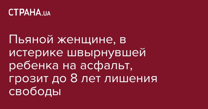 Пьяная биологическая мать ребенка, швырнула младенца на асфальт на летней площадке одного из харьковских кафе. В результате этого мальчик получил закрытую черепно-мозговую травму. Правоохранители начали процедуру привлечения женщины к уголовной ответственности за это. Ей грозит до 8 лет лишения свободы, передает пресс-служба прокуратуры Харьковской области.