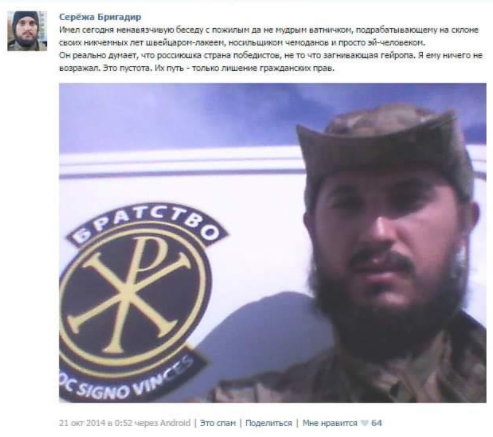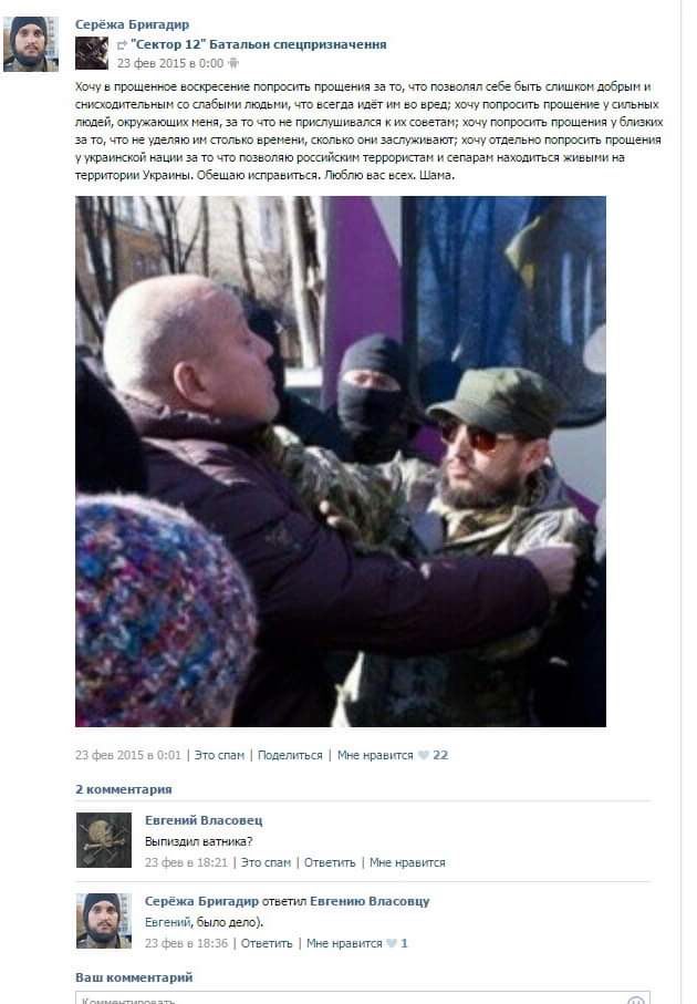 В феврале 2015 года Бригадир хвастается, что "в@п@зд@л ватника"