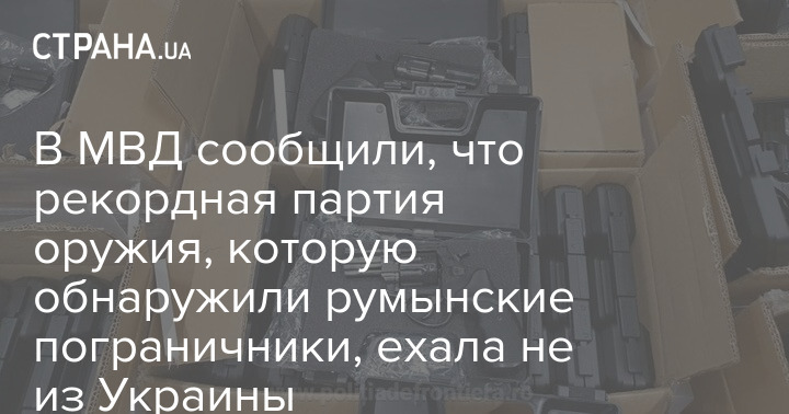 В Министерстве внутренних дел сообщили, что рекордная партия оружия, которую задержали румынские пограничники, прибыла в Румынию из Турции, а не из Украины.