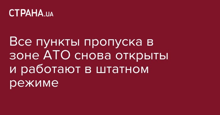 Все пункты пропуска в зоне АТО снова открыты и работают в штатном режиме
