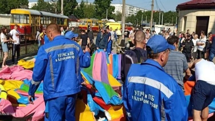 В Барнауле взорвался надувной батут с детьми. Фото: Twitter/Раньше всех
