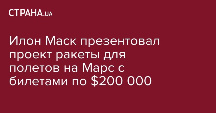 Основатель компании Space X Илон Маск представил проект космического корабля для полетов на Марс. Презентация состоялась на Международном астрономическом конгрессе в мексиканской Гвадалахаре, сообщает ГазетаРу.