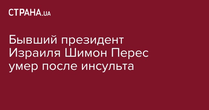 Бывший президент Израиля Шимон Перес умер после инсульта