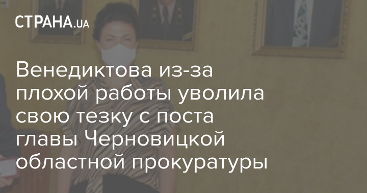 Генпрокурор Ирина Венедиктова уволила главу Черновицкой областной прокуратуры Ирину Кравченко в связи с ненадлежащим выполнением должностных обязанностей.