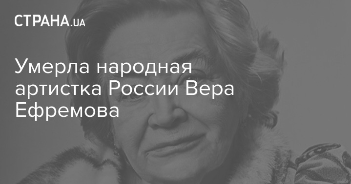 Народная артистка России, художественный руководитель и главный режиссёр Тверского драматического театра Вера Ефремова умерла в на 92-м году жизни.