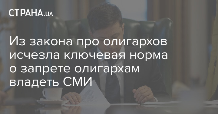 Из закона про олигархов, если сравнивать уже опубликованный документ на сайте Верховной Рады, с появившимися накануне его неофициальными версиями, исчезла ключевая норма: запрет олигархам владеть СМИ.