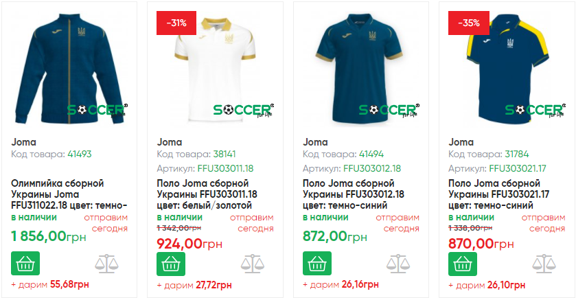 Футбольные болельщики после презентации захотели приобрести себе футболку сборной, однако на сайте спортивных товаров доступны футболки Joma старого образца или реплики - по 790 грн. Новая экипировка не поступила в интернет-магазины.
