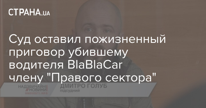 Апелляционный суд оставил без изменений приговор суда в уголовном производстве об убийстве в 2016 году жителя Львова, работавшего водителем сервиса BlaBlaCar.