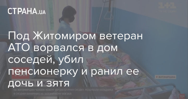 В Житомирской области 55-летний ветеран АТО ворвался в дом к соседям, убил 67-летнюю односельчанку, а ее дочь и зятя ударил ножом в грудь.
