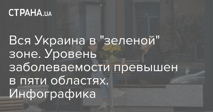 Вся Украина в "зеленой" зоне. Уровень заболеваемости превышен в пяти областях. Инфографика