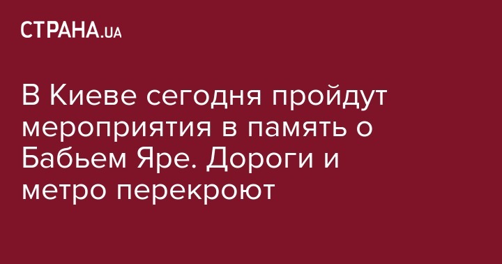 В Киеве сегодня пройдут мероприятия в память о Бабьем Яре. Дороги и метро перекроют