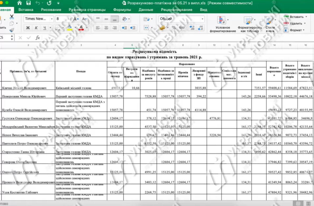 В начисленную Виталию Кличко сумму в 59 409 гривен входит должностной оклад - 49 011 гривен, командировочные - 11 гривен, больничный - 3 036 гривен, другие выплаты - 7 352 гривны. О