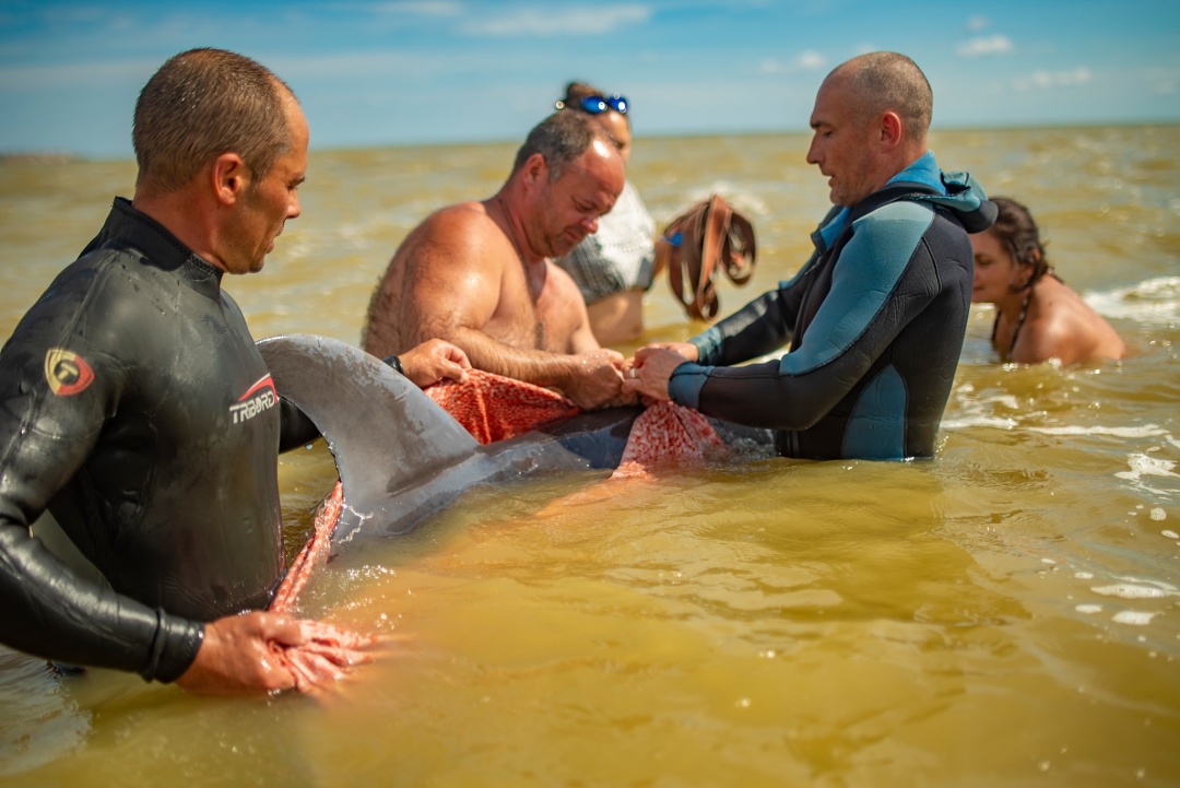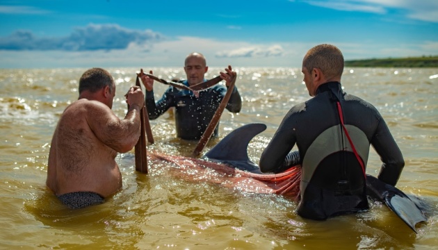 Под Херсоном спасли дельфина, которого выбросило на берег штормом, фото: facebook.com/olegjan.marchuk