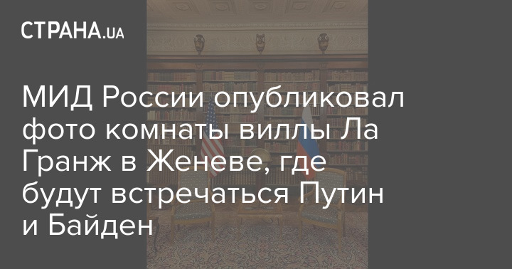 Министерство иностранных дел Российской Федерации опубликовало фото комнаты расположенной на берегу Женевского озера виллы Ла Гранж (villa La Grange), где 16 июня проведут встречу президенты Владимир Путин и Джо Байден.