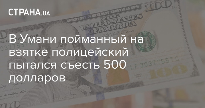 В Умани правоохранитель попытался съесть 500 долларов при задержании с поличным во время получения взятки. Как выяснилось, полицейский сектора дознания Уманского районного управления Нацполиции потребовал 2000 долларов взятки за возвращение изъятого автомобиля Audi А6.