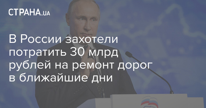 Президент России Владимир Путин заявил, что на ремонт дорог в стране выделят дополнительно 30 миллиардов рублей (примерно 11 млрд гривен). Он уточнил, что выделение денег произойдет "в ближайшие дни", чтобы ремонт начался уже этим летом.