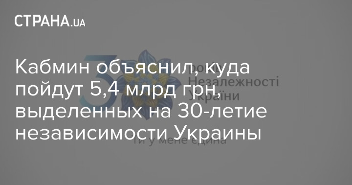 Кабмин объяснил, куда пойдут 5,4 млрд грн, выделенных на 30-летие независимости Украины