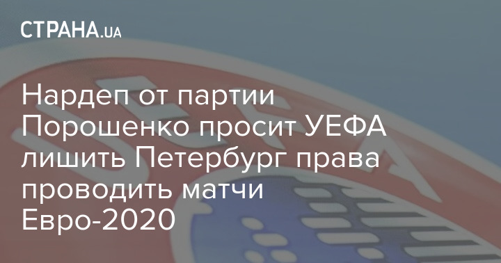 Народный депутат Украины от фракции "Европейской солидарности" Алексей Гончаренко обратился к Союзу европейских футбольных ассоциаций (УЕФА) с просьбой перенести матчи Европейского чемпионата по футболу 2020 из российского Санкт-Петербурга. В качестве причины он называет ситуацию с коронавирусом в городе.