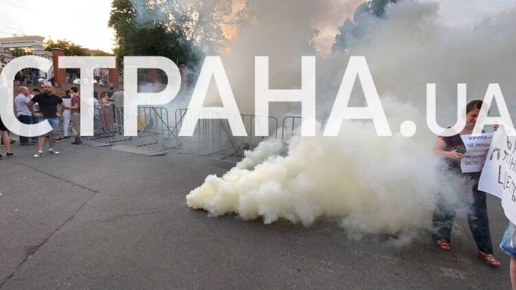 Появились фото и видео с акции националистов, забросавших дымовыми шашками людей перед концертом Басты в Киеве