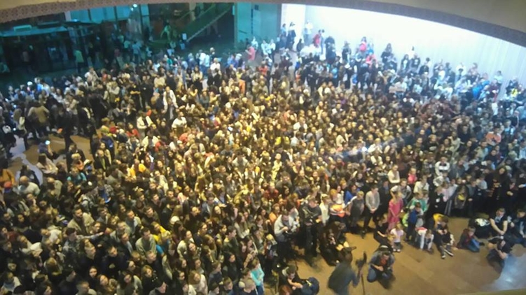 Множество поттероманов собралось перед сценой, где проходит презентация. Напомним, по всей Украине продажи книги "Гарри Поттер и проклятое дитя" стартуют 30 сентября ровно в 20.00.