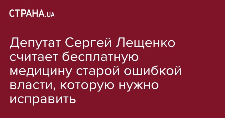 Народный депутат Сергей Лещенко заявил, что в Украине бесплатной медицины по сути не существует, а такой пункт был включен в Конституцию с целью не допустить узурпации власти Леонидом Кучмой и необходимостью пойти на соглашение с коммунистами. Об этом нардеп заявил в интервью Reed.