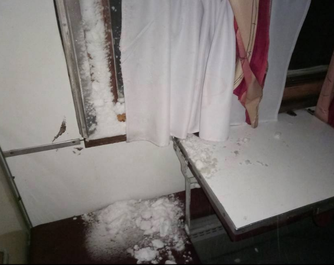 Девушке пришлось буквально отдирать примерзшую к окну верхнюю одежду. Единственное, что мог предложить проводник в этой ситуации - тряпку, чтобы как-то устранить течь.
