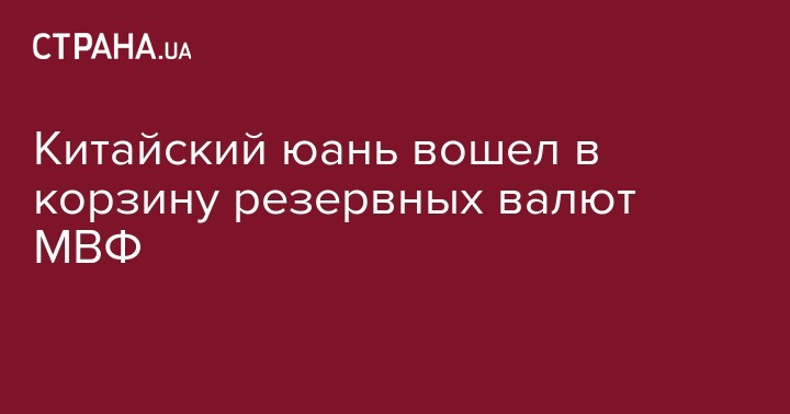 С 1 октября исполнительный совет МВФ включил китайский юань в корзину SDR. Об этом сообщает пресс-служба МВФ.