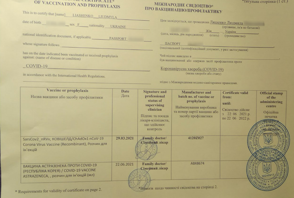 У нее именно такая ситуация, судя по международному сертификату о вакцинации, который выдали врачи.