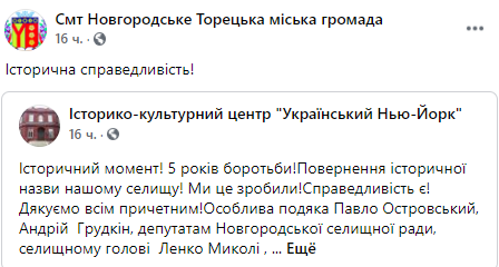 "Историческая справедливость!", - гласит пост на сайте местного совета после переменования.