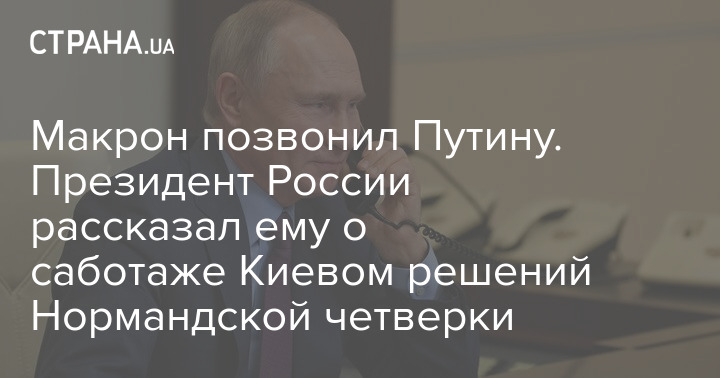 "Президент России указал на деструктивные действия Киева, по вине которого предпринимаемые – в том числе в "нормандском" формате – усилия фактически саботируются. Акцентирована необходимость полного выполнения украинскими властями ранее взятых на себя обязательств, прежде всего по установлению прямого диалога с Донецком и Луганском и правовому оформлению особого статуса Донбасса", - сообщили в Кремле.