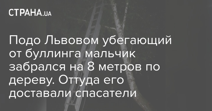 Подо Львовом убегающий от буллинга мальчик забрался на 8 метров по дереву. Оттуда его доставали спасатели