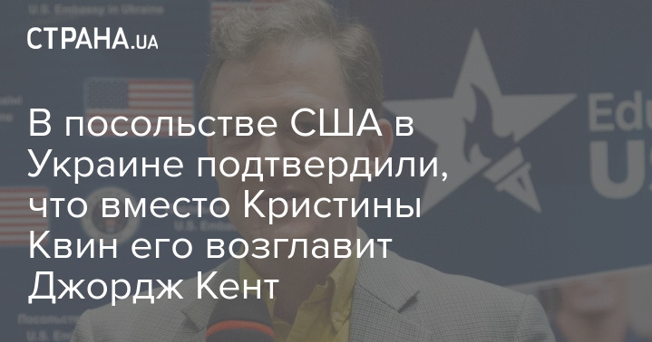 "Джордж Кент, который в настоящее время занимает должность заместителя помощника государственного секретаря США в Бюро по делам Европы и Евразии, прибудет в Киев в конце этой недели, чтобы исполнять обязанности временного поверенного в делах в посольстве США в Киеве до конца этого месяца. Временный поверенный в делах США Кристина Квин вернется в Украину после двухнедельного отпуска и приступит к исполнению своих обязанностей", - рассказали в посольстве.