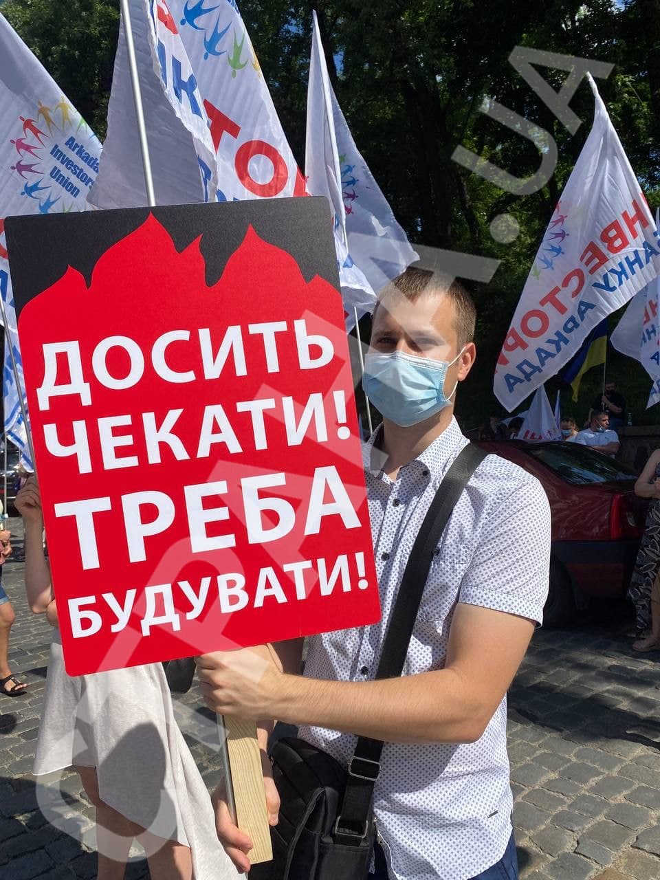 "Третий год замороженное строительство. Для полномасштабного и непрерывного обновления и завершения строительства всех домов в срок до трех лет нужно покрыть дефицит бюджета в размере 3.6 миллиарда гривен. Власть обещала нам диалог но его так и не было",- заявляют участники протеста